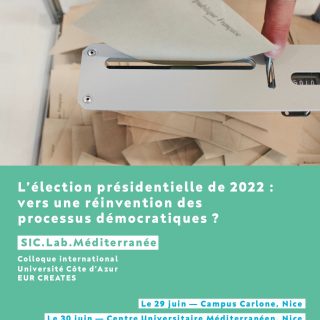 L’élection présidentielle de 2022 : vers une réinvention des processus démocratiques ? SIC.Lab Méditerranée Colloque international Université Côte d’Azur EUR CREATES Le 29 juin – Campus Carlone, Nice Le 30 juin ...
