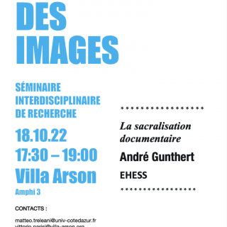 Les voies des images Séminaire interdisciplinaire de recherche Projet ANR CROBORA Mardi 18 octobre – Villa Arson 17h30 – 19h00 La sacralisation documentaire – André Gunthert (EHESS) La capacité à...