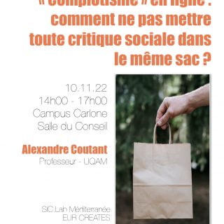 Au-delà de la qualification de « complotiste » : comment ne pas mettre toute critique sociale dans le même sac ? Une enquête auprès des publics québécois Alexandre Coutant Jeudi 10 novembre...