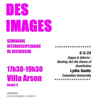 Les voies des images Séminaire interdisciplinaire de recherche Projet ANR CROBORA Lundi 06 mai – Villa Arson 17h30 – 19h30 Zappa & Adorno: Beating Out the Dance of Humiliation – Lydia...