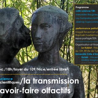 La transmission de savoir-faire olfactifs Jeudi 8 décembre à 18h à l’Entre-Pont 109 – 89, route de Turin 06300 Nice entrée libre et interventions accessibles 18h/café science : regards scientifiques sur la...