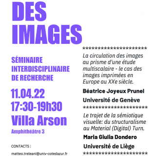 Les voies des images Séminaire interdisciplinaire de recherche Projet ANR CROBORA Lundi 11 avril – Villa Arson 17h30 – 19h30 La circulation des images au prisme d’une étude multiscalaire –...
