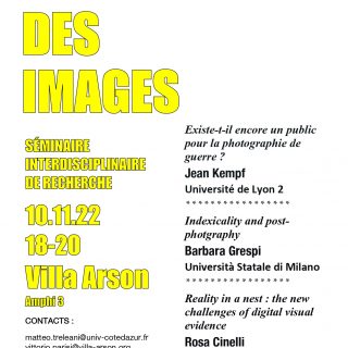 Les voies des images Séminaire interdisciplinaire de recherche Projet ANR CROBORA Mardi 10 novembre – Villa Arson 17h30 – 19h30 Existe-t-il encore un public pour la photographie de guerre ? – Jean...